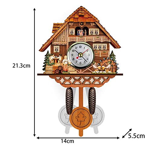 Cuckoo Clock: This wooden wall clock uses numbers and pointers to display time, with precise hour and minute hands movement. The plastic display surface of the clock is clear and easy to check the time at any time.