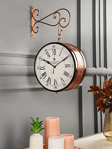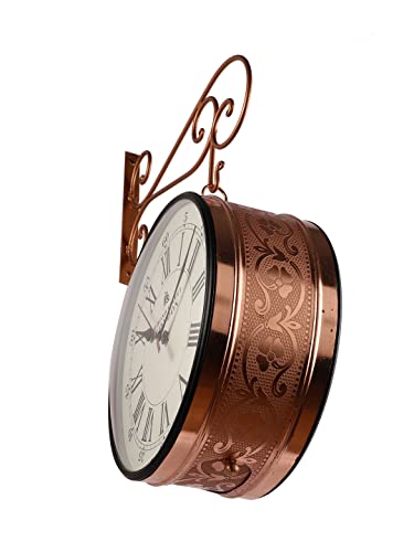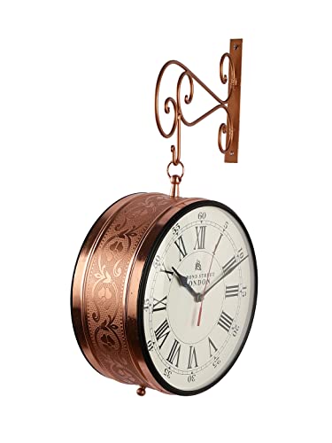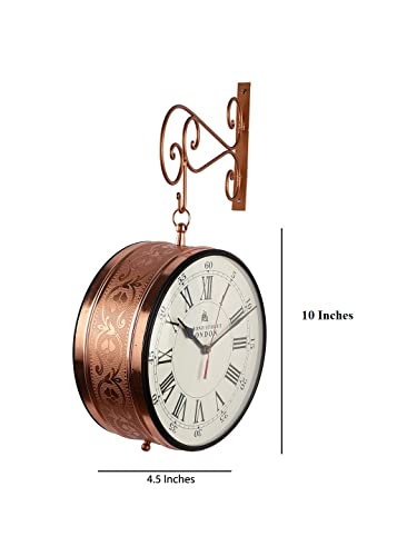 Vintage Copper Dual Side Victoria Station Dial/Bond Street Dial Metal Carving Clock with Metal Stand Station Clock Hanging Clock Platform Style Clock Wall Clock
