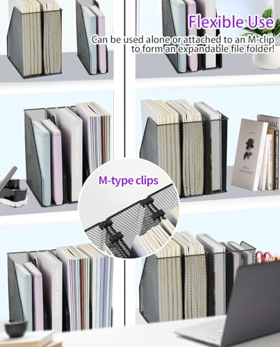 CUSTOMIZABLE ORGANIZATION: 4 desk file organizers for flexible office organization at home, office, or school. Attach to an M-clip for expandable use. Quick-release clips ensure adaptability